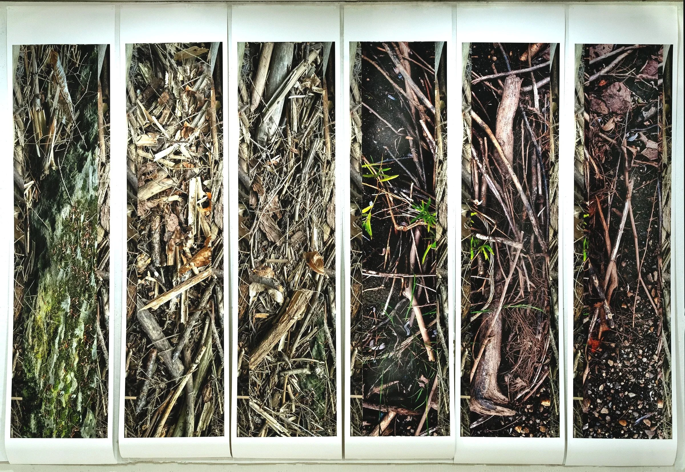 The project Dissonant Ground (2025-) explores the chemical color and textural changes that occur on the surface of the land in riparian zones affected by floods and droughts. While the beauty of these areas, as reflected in the unusual color shifts, can illicit a profound, sublime beauty, the surfaces are contaminated as the land, water, and debris spill into the rivers, leaving deposits along the shoreline in its wake.